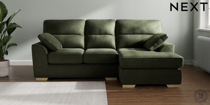 7.2.10 Buy Stamford Highback Small Sofa Chaise - Right Hand Boucle Chenille Dark Moss Green Large Square Angle - Light from the Next UK online shop Click here to use our accessible website