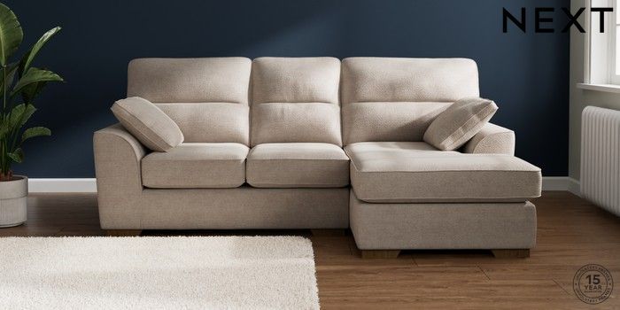 7.2.10 Buy Stamford Highback Small Sofa Chaise - Right Hand Boucle Chenille Light Natural Large Square Angle - Mid from the Next UK online shop Click here to use our accessible website