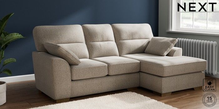7.2.10 Buy Stamford Highback Small Sofa Chaise - Right Hand Chunky Boucle Easy Clean Dove Large Square Angle - Mid from the Next UK online shop Click here to use our accessible website