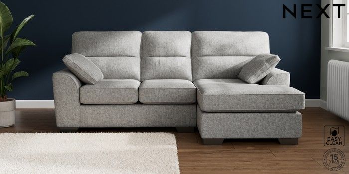 7.2.10 Buy Stamford Highback Small Sofa Chaise - Right Hand Chunky Boucle Easy Clean Light Grey Large Square Angle - Gunmetal from the Next UK online shop Click here to use our accessible website
