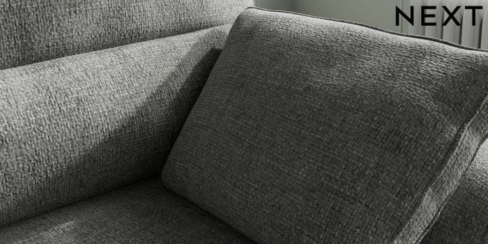 7.2.10 Buy Stamford Highback Small Sofa Chaise - Right Hand Chunky Chenille Dark Grey Large Square Angle - Brushed Brass from the Next UK online shop Click here to use our accessible website