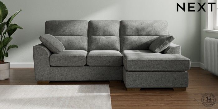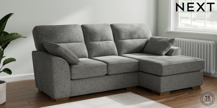 7.2.10 Buy Stamford Highback Small Sofa Chaise - Right Hand Chunky Chenille Dark Grey Large Square Angle - Mid from the Next UK online shop Click here to use our accessible website