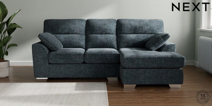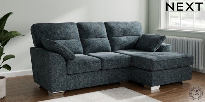 7.2.10 Buy Stamford Highback Small Sofa Chaise - Right Hand Chunky Chenille Dark Navy Blue Large Square Angle - Chrome Metal from the Next UK online shop Click here to use our accessible website