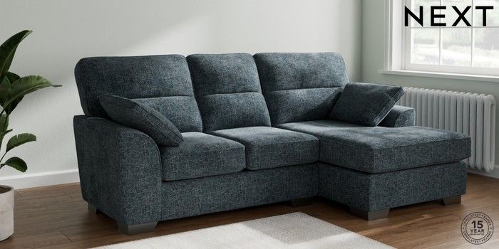 7.3.1 Buy Stamford Highback Small Sofa Chaise - Right Hand Chunky Chenille Dark Navy Blue Large Square Angle - Gunmetal from the Next UK online shop Click here to use our accessible website