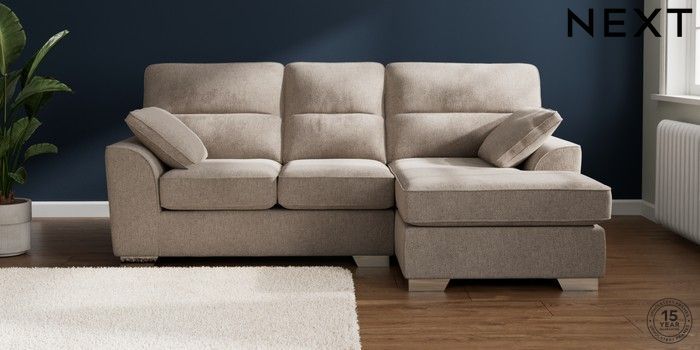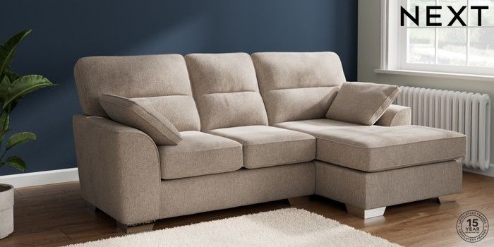 7.2.10 Buy Stamford Highback Small Sofa Chaise - Right Hand Chunky Chenille Light Dove Large Square Angle - Chrome Metal from the Next UK online shop Click here to use our accessible website
