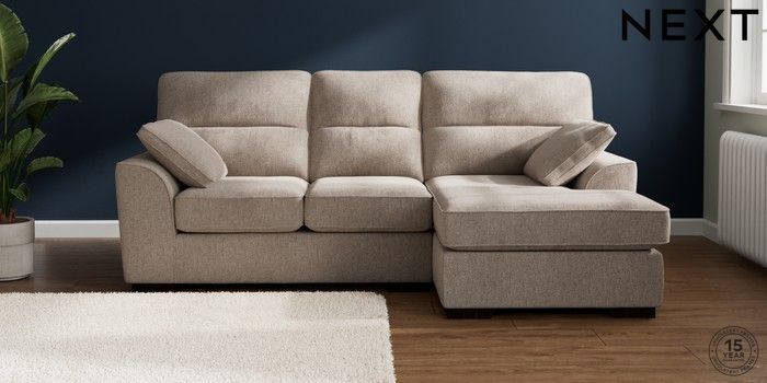 7.2.10 Buy Stamford Highback Small Sofa Chaise - Right Hand Chunky Chenille Light Dove Large Square Angle - Dark from the Next UK online shop Click here to use our accessible website