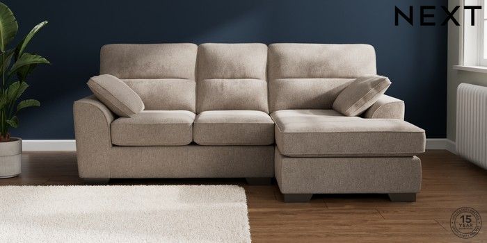 7.2.10 Buy Stamford Highback Small Sofa Chaise - Right Hand Chunky Chenille Light Dove Large Square Angle - Gunmetal from the Next UK online shop Click here to use our accessible website