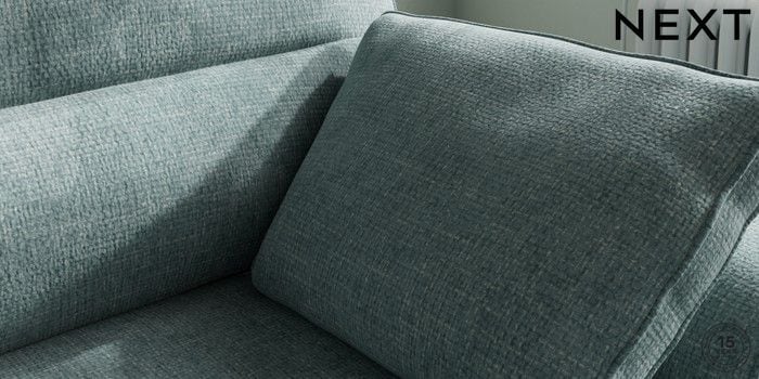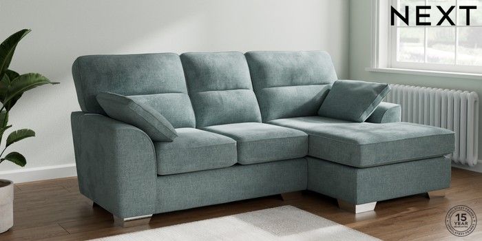 7.2.10 Buy Stamford Highback Small Sofa Chaise - Right Hand Chunky Chenille Light Teal Green Large Square Angle - Chrome Metal from the Next UK online shop Click here to use our accessible website