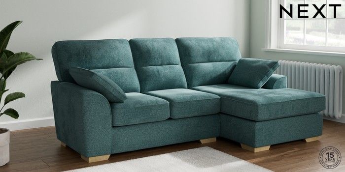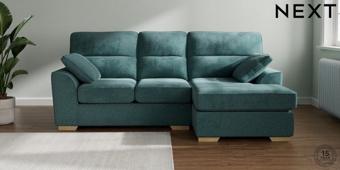 7.2.10 Buy Stamford Highback Small Sofa Chaise - Right Hand Chunky Chenille Mid Teal Green Large Square Angle - Light from the Next UK online shop Click here to use our accessible website