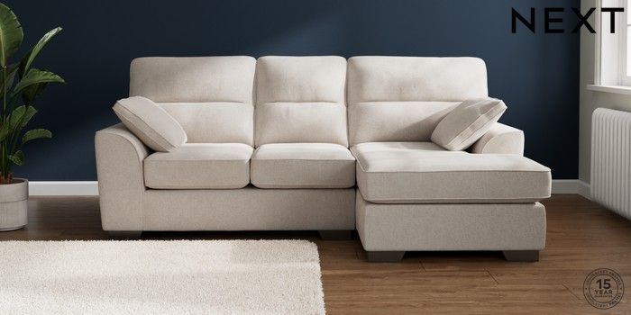 7.2.10 Buy Stamford Highback Small Sofa Chaise - Right Hand Chunky Chenille Oyster Large Square Angle - Gunmetal from the Next UK online shop Click here to use our accessible website