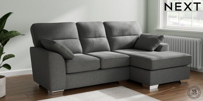 7.2.10 Buy Stamford Highback Small Sofa Chaise - Right Hand Chunky Texture Dark Grey Large Square Angle - Chrome Metal from the Next UK online shop Click here to use our accessible website