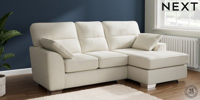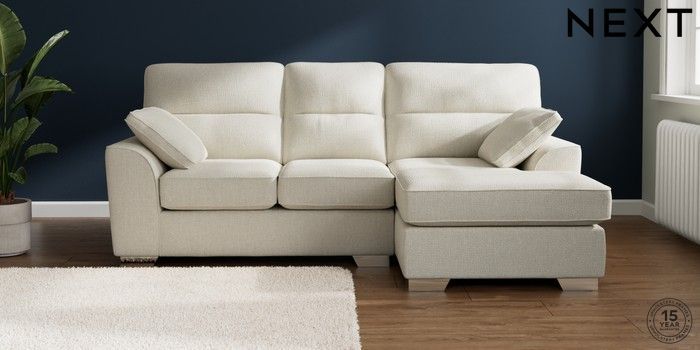 7.2.10 Buy Stamford Highback Small Sofa Chaise - Right Hand Chunky Texture Oyster Large Square Angle - Chrome Metal from the Next UK online shop Click here to use our accessible website