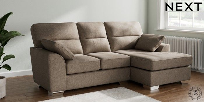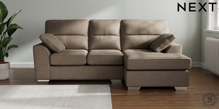 7.3.1 Buy Stamford Highback Small Sofa Chaise - Right Hand Chunky Weave Dark Natural Large Square Angle - Chrome Metal from the Next UK online shop Click here to use our accessible website