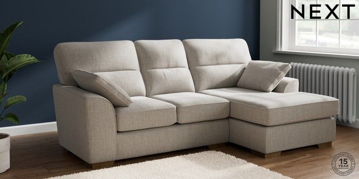 7.2.10 Buy Stamford Highback Small Sofa Chaise - Right Hand Chunky Weave Dove Grey Large Square Angle - Mid from the Next UK online shop Click here to use our accessible website