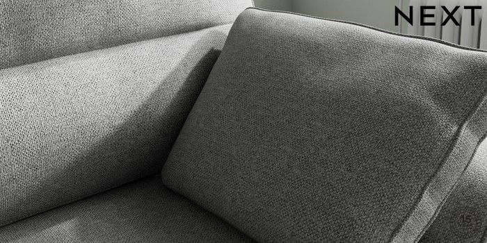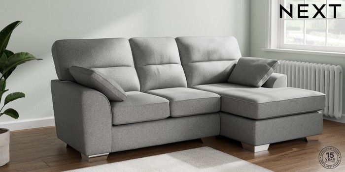 7.2.10 Buy Stamford Highback Small Sofa Chaise - Right Hand Chunky Weave Mid Grey Large Square Angle - Chrome Metal from the Next UK online shop Click here to use our accessible website