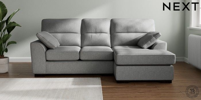7.2.10 Buy Stamford Highback Small Sofa Chaise - Right Hand Chunky Weave Mid Grey Large Square Angle - Dark from the Next UK online shop Click here to use our accessible website