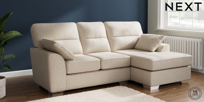 7.3.1 Buy Stamford Highback Small Sofa Chaise - Right Hand Chunky Weave Mid Natural Large Square Angle - Chrome Metal from the Next UK online shop Click here to use our accessible website