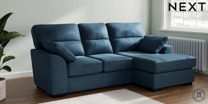 7.2.10 Buy Stamford Highback Small Sofa Chaise - Right Hand Cotswold Chenille Dark Blue Large Square Angle - Dark from the Next UK online shop Click here to use our accessible website