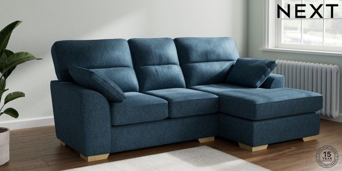 7.2.10 Buy Stamford Highback Small Sofa Chaise - Right Hand Cotswold Chenille Dark Blue Large Square Angle - Light from the Next UK online shop Click here to use our accessible website
