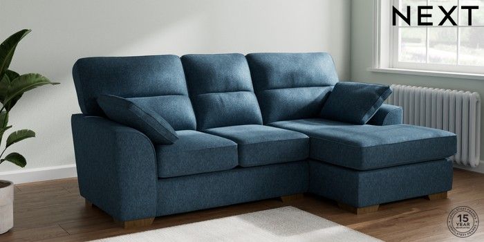 7.2.10 Buy Stamford Highback Small Sofa Chaise - Right Hand Cotswold Chenille Dark Blue Large Square Angle - Mid from the Next UK online shop Click here to use our accessible website