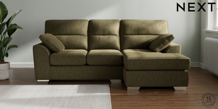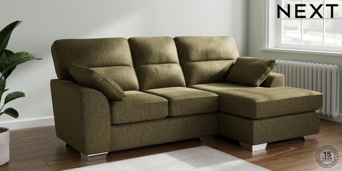 7.3.1 Buy Stamford Highback Small Sofa Chaise - Right Hand Cotswold Chenille Dark Green Large Square Angle - Chrome Metal from the Next UK online shop Click here to use our accessible website