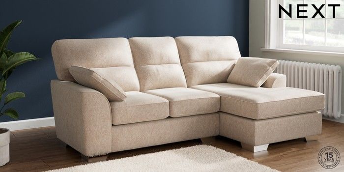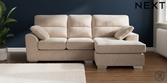 7.2.10 Buy Stamford Highback Small Sofa Chaise - Right Hand Cotswold Chenille Light Natural Large Square Angle - Chrome Metal from the Next UK online shop Click here to use our accessible website