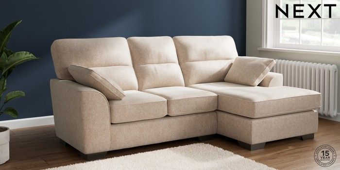 7.2.6 Buy Stamford Highback Small Sofa Chaise - Right Hand Cotswold Chenille Light Natural Large Square Angle - Gunmetal from the Next UK online shop Click here to use our accessible website