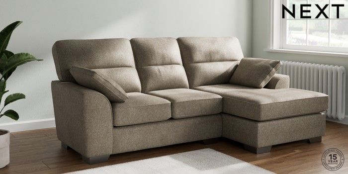 7.2.6 Buy Stamford Highback Small Sofa Chaise - Right Hand Cotswold Chenille Mid Mink Brown Large Square Angle - Gunmetal from the Next UK online shop Click here to use our accessible website