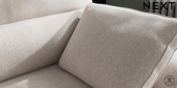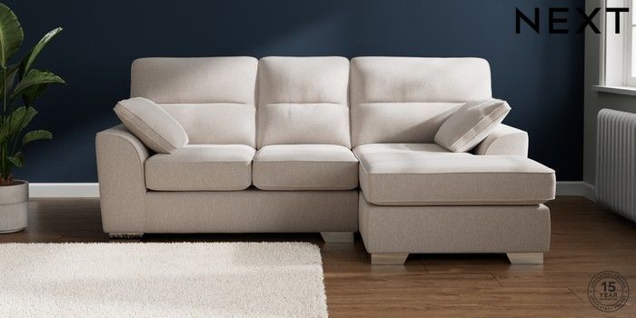 7.2.10 Buy Stamford Highback Small Sofa Chaise - Right Hand Cotswold Chenille Oyster Large Square Angle - Chrome Metal from the Next UK online shop Click here to use our accessible website