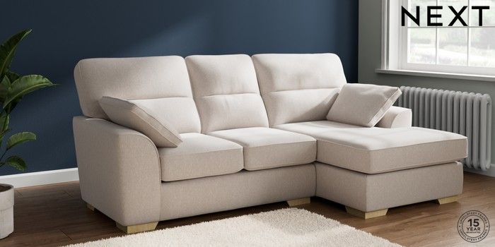 7.2.10 Buy Stamford Highback Small Sofa Chaise - Right Hand Cotswold Chenille Oyster Large Square Angle - Light from the Next UK online shop Click here to use our accessible website