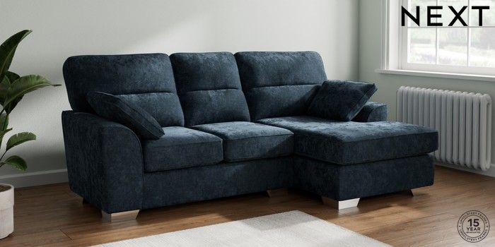 7.2.10 Buy Stamford Highback Small Sofa Chaise - Right Hand Distressed Velour Midnight Blue Large Square Angle - Chrome Metal from the Next UK online shop Click here to use our accessible website