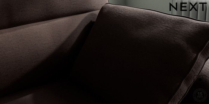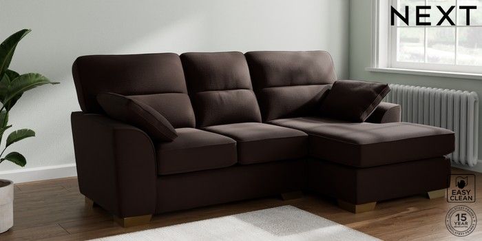 7.2.10 Buy Stamford Highback Small Sofa Chaise - Right Hand Fine Chenille Easy Clean Chocolate Brown Large Square Angle - Brushed Brass from the Next UK online shop Click here to use our accessible website