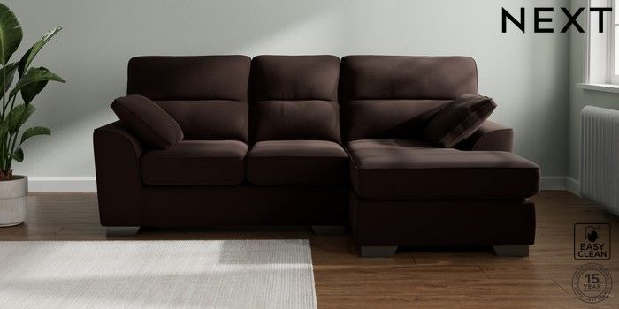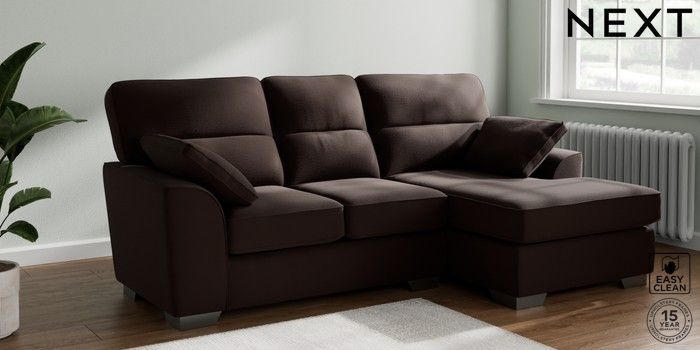 7.3.1 Buy Stamford Highback Small Sofa Chaise - Right Hand Fine Chenille Easy Clean Chocolate Brown Large Square Angle - Gunmetal from the Next UK online shop Click here to use our accessible website