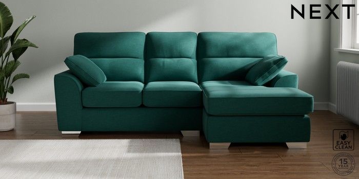 7.2.10 Buy Stamford Highback Small Sofa Chaise - Right Hand Fine Chenille Easy Clean Dark Juniper Green Large Square Angle - Chrome Metal from the Next UK online shop Click here to use our accessible website
