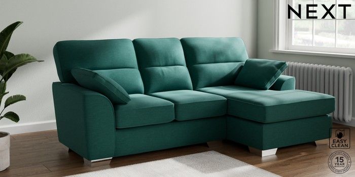 6.12.1 Buy Stamford Highback Small Sofa Chaise - Right Hand Fine Chenille Easy Clean Dark Juniper Green Large Square Angle - Chrome Metal from the Next UK online shop Click here to use our accessible website
