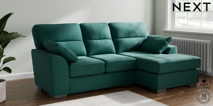 7.3.1 Buy Stamford Highback Small Sofa Chaise - Right Hand Fine Chenille Easy Clean Dark Juniper Green Large Square Angle - Gunmetal from the Next UK online shop Click here to use our accessible website