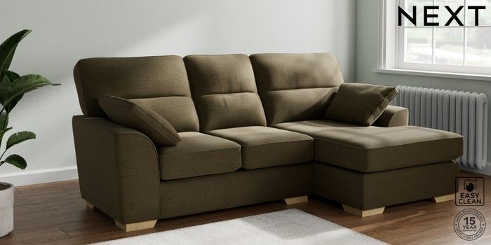 7.2.10 Buy Stamford Highback Small Sofa Chaise - Right Hand Fine Chenille Easy Clean Dark Moss Green Large Square Angle - Light from the Next UK online shop Click here to use our accessible website