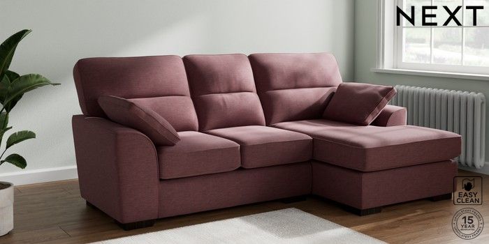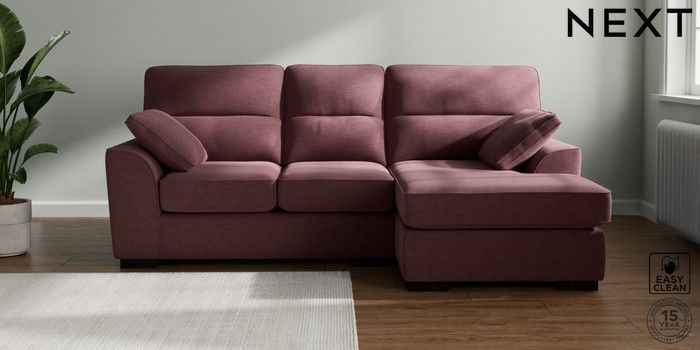 7.3.1 Buy Stamford Highback Small Sofa Chaise - Right Hand Fine Chenille Easy Clean Mid Mulberry Purple Large Square Angle - Dark from the Next UK online shop Click here to use our accessible website