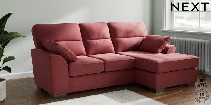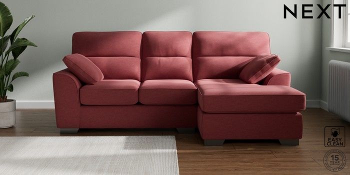 7.3.1 Buy Stamford Highback Small Sofa Chaise - Right Hand Fine Chenille Easy Clean Mid Pink Large Square Angle - Gunmetal from the Next UK online shop Click here to use our accessible website