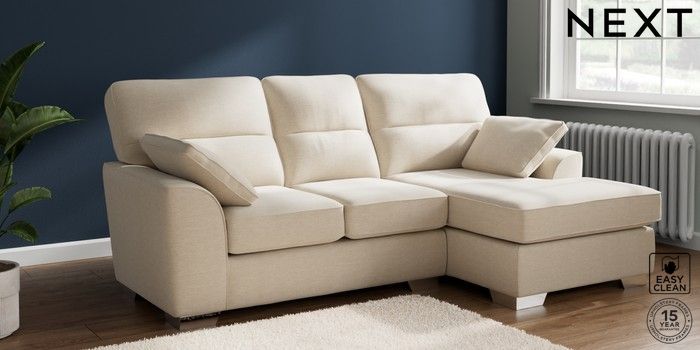 7.3.1 Buy Stamford Highback Small Sofa Chaise - Right Hand Fine Chenille Easy Clean Oyster Large Square Angle - Chrome Metal from the Next UK online shop Click here to use our accessible website
