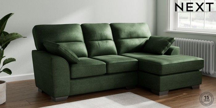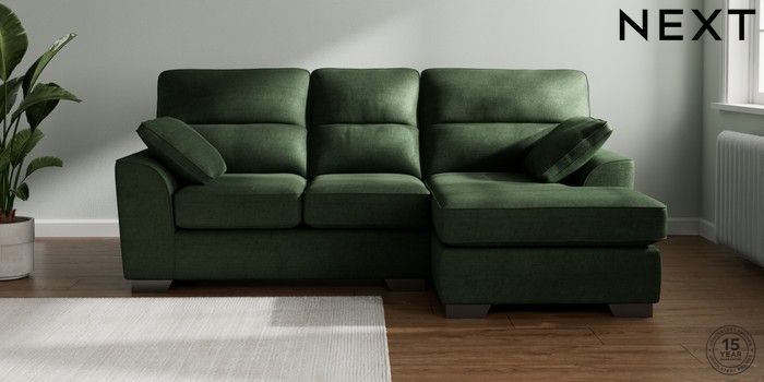 7.3.1 Buy Stamford Highback Small Sofa Chaise - Right Hand Luxe Chenille Dark Green Large Square Angle - Gunmetal from the Next UK online shop Click here to use our accessible website