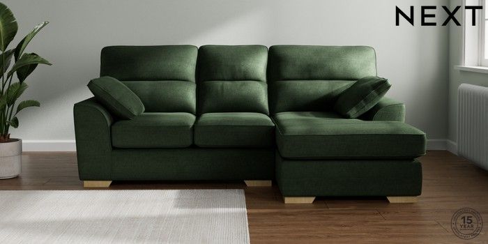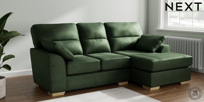 7.2.10 Buy Stamford Highback Small Sofa Chaise - Right Hand Luxe Chenille Dark Green Large Square Angle - Light from the Next UK online shop Click here to use our accessible website