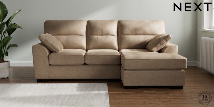7.2.10 Buy Stamford Highback Small Sofa Chaise - Right Hand Luxe Chenille Mid Camel Beige Large Square Angle - Dark from the Next UK online shop Click here to use our accessible website
