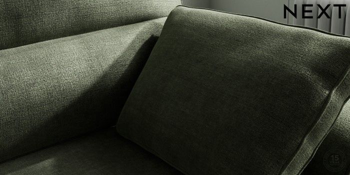 7.2.6 Buy Stamford Highback Small Sofa Chaise - Right Hand Luxe Chenille Mid Green Large Square Angle - Brushed Brass from the Next UK online shop Click here to use our accessible website