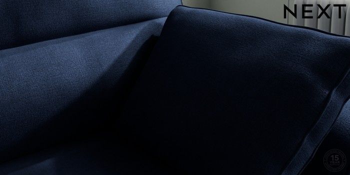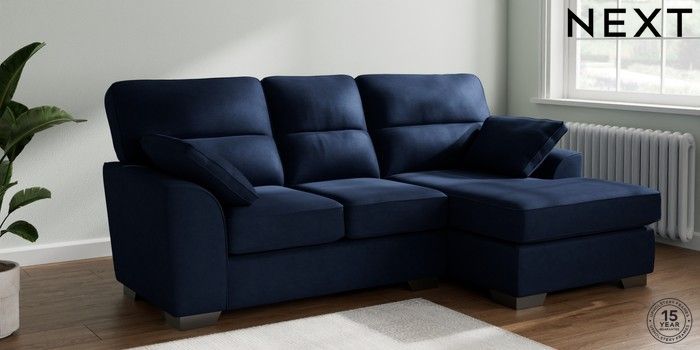 7.2.10 Buy Stamford Highback Small Sofa Chaise - Right Hand Luxe Chenille Navy Blue Large Square Angle - Gunmetal from the Next UK online shop Click here to use our accessible website