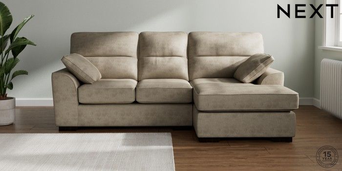 7.3.1 Buy Stamford Highback Small Sofa Chaise - Right Hand Monza Faux Leather Easy Clean Mink Brown Large Square Angle - Dark from the Next UK online shop Click here to use our accessible website