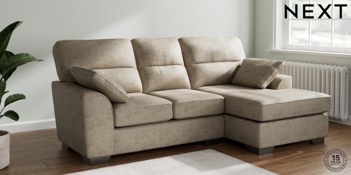 7.3.1 Buy Stamford Highback Small Sofa Chaise - Right Hand Monza Faux Leather Easy Clean Mink Brown Large Square Angle - Gunmetal from the Next UK online shop Click here to use our accessible website