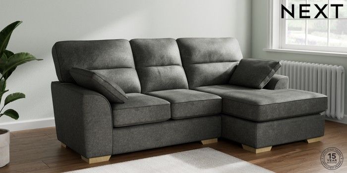7.2.10 Buy Stamford Highback Small Sofa Chaise - Right Hand Plush Chenille Dark Grey Large Square Angle - Light from the Next UK online shop Click here to use our accessible website