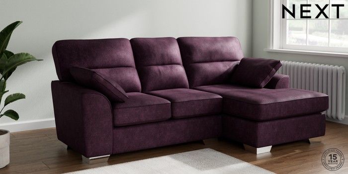 6.12.1 Buy Stamford Highback Small Sofa Chaise - Right Hand Plush Chenille Dark Plum Purple Large Square Angle - Chrome Metal from the Next UK online shop Click here to use our accessible website