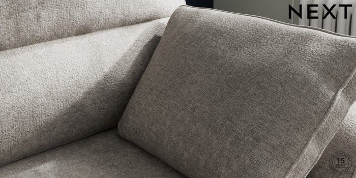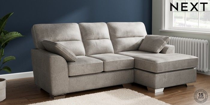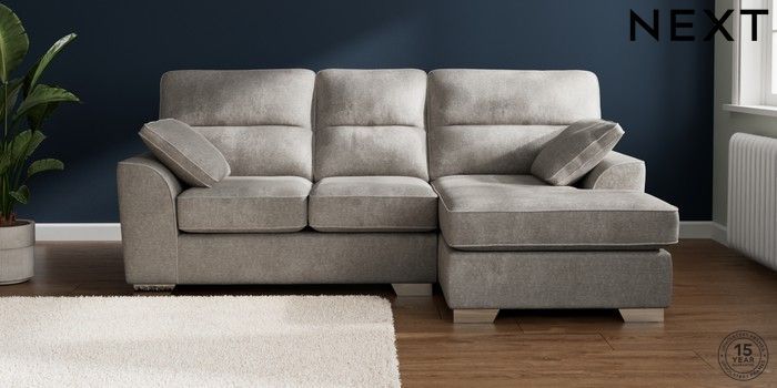 7.2.10 Buy Stamford Highback Small Sofa Chaise - Right Hand Plush Chenille Light Grey Large Square Angle - Chrome Metal from the Next UK online shop Click here to use our accessible website
